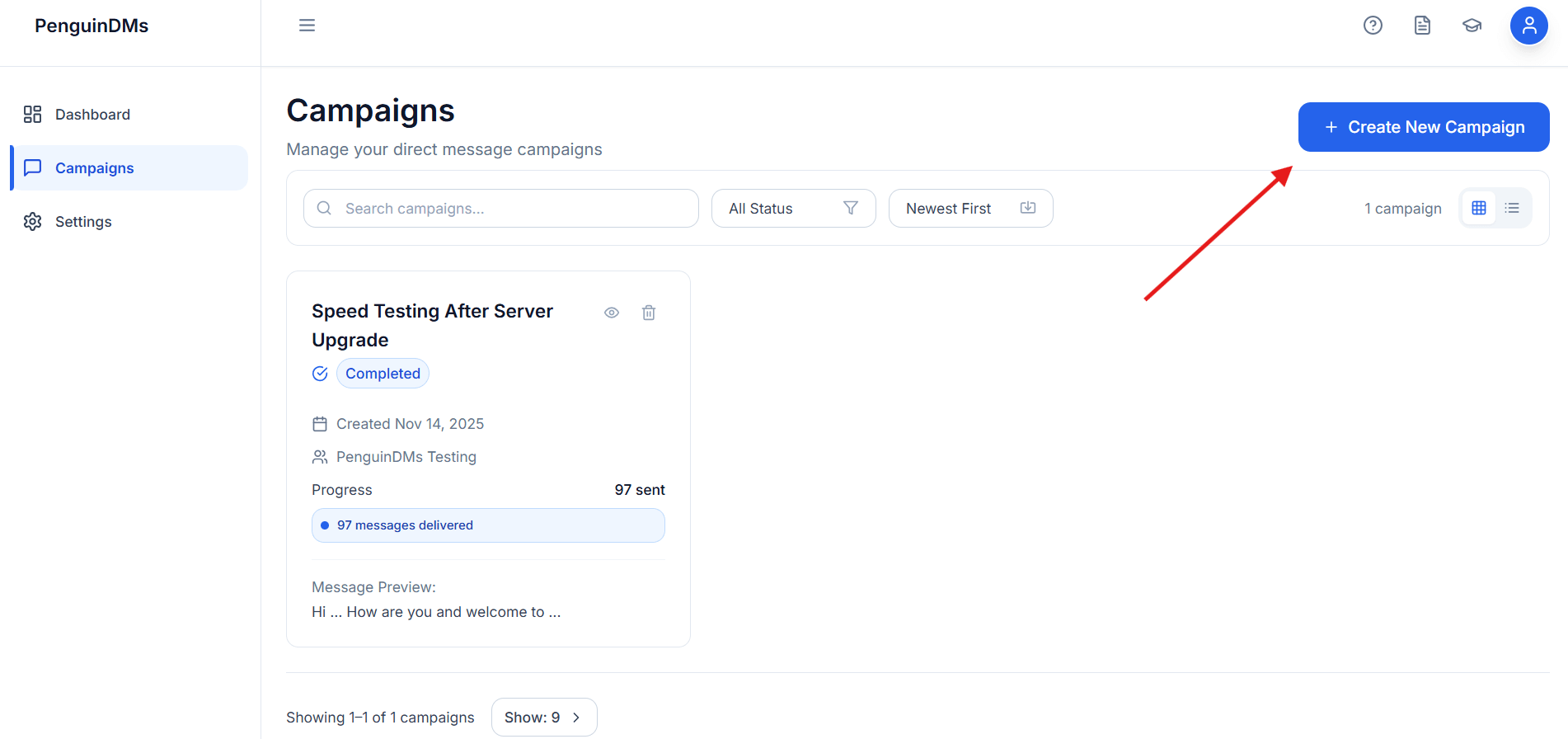 Press Start Campaign, and PenguinDMs will start sending your messages one by one automatically like a real human.